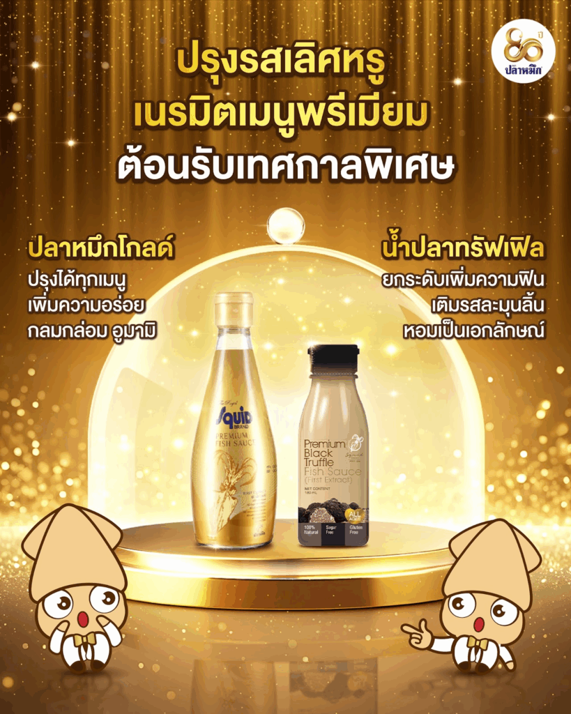 ไม่ว่าคุณจะปรุงเมนูง่ายๆ หรือสร้างสรรค์อาหารระดับ Fine Dining น้ำปลาตราปลาหมึก (Squid Brand) คือเพื่อนคู่ครัวที่คุณไม่ควรพลาด ด้วย ปลาหมึกโกลด์ สำหรับรสชาติพรีเมียม และ น้ำปลาทรัฟเฟิล สำหรับมิติรสชาติระดับเชฟ คุณสามารถยกระดับทุกจานให้มีรสชาติกลมกล่อม มีมิติ และน่าจดจำ