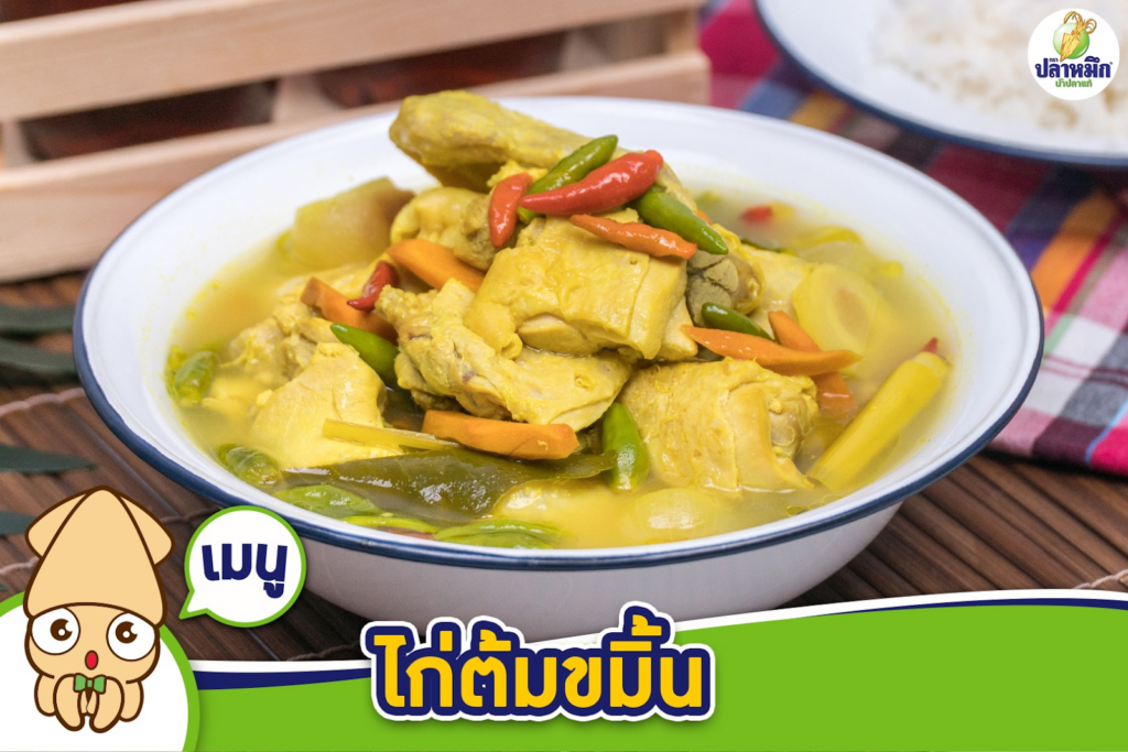 ไก่ต้มขมิ้น เมนูบ้าน ๆ แต่รสชาติไม่ธรรมดา อร่อยแบบ รสใต้แท้ ๆ หอมขมิ้น ชวนกินตั้งแต่คำแรก เนื้อไก่นุ่ม ต้มจนเข้าเครื่อง ซดน้ำร้อน ๆ คล่องคอ ปรุงด้วย น้ำปลาแท้ตราปลาหมึก ช่วยชูรสให้เด่นยิ่งขึ้น เพิ่มความหอม เค็มกลมกล่อม แบบไม่กลบรสวัตถุดิบ ยิ่งกินยิ่งได้รสชาติแท้ของอาหารปักษ์ใต้ เมนูเรียบง่าย แต่อร่อยจริง ต้องลองแล้วจะติดใจ ดูสูตรอาหารที่นี่