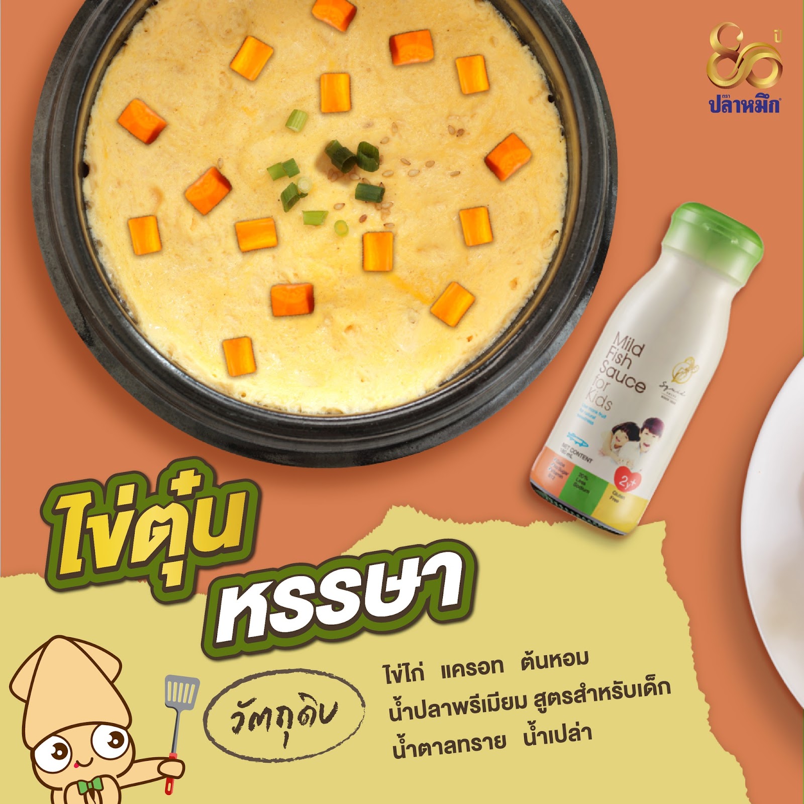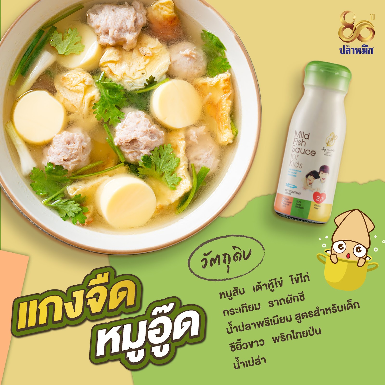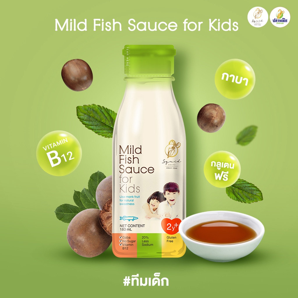 น้ำปลาสูตรสำหรับเด็ก จาก Squid Brand เป็นผลิตภัณฑ์ที่ออกแบบมาเพื่อตอบโจทย์ทางโภชนาการที่จำเป็นสำหรับเด็ก ที่กำลังเริ่มทำความรู้จักกับรสชาติอาหาร โดยน้ำปลาสูตรนี้สามารถนำไปปรุงอาหารได้หลากหลายเมนู เช่น แกงจืด หรือผัดผัก ก็ช่วยเพิ่มรสชาติอาหารให้มีความหอมกลมกล่อมมากยิ่งขึ้น